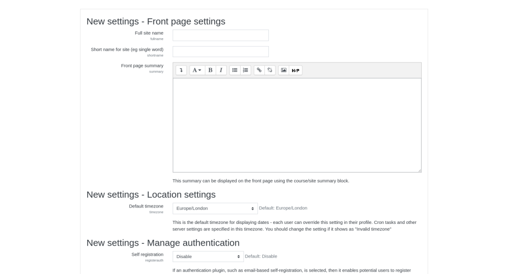 Once you have saved the changes you will be logged in your newly installed Moodle application and you could proceed with using it as you see fit.