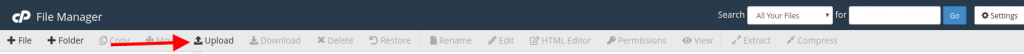 Once you have accessed the public_html directory you could upload the archived files of the application which you have downloaded earlier by clicking on the Upload button in the File Manager.