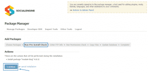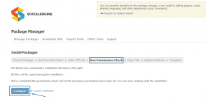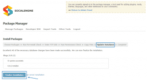 In order for the package to work properly the database associated with the application has to be updated. This step represents that action. This is also the last step of the installation process. Click on Finalize Installation: