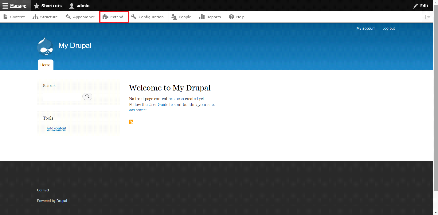 Once inside the Aministrative Panel, simply navigate to the "Extend" section of the panel.