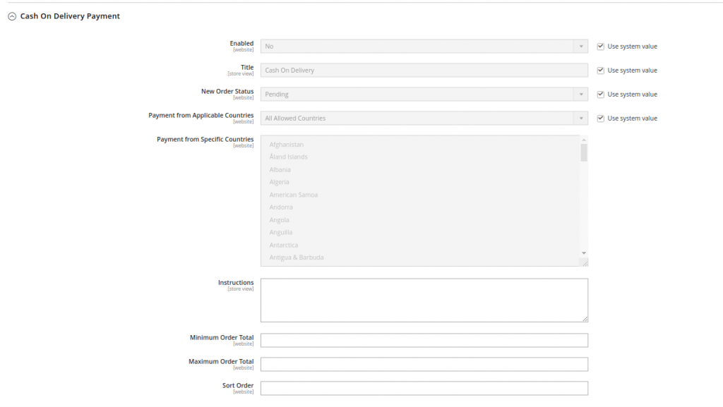 - Minimum Order Total – Here you can set the minimum amount which is required for making a COD payment.