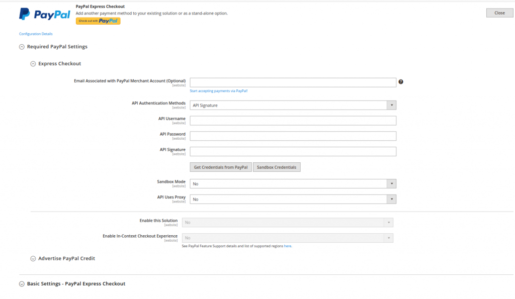 Paypal – This is the most popular and widely used online payment gateway, that is most likely the most reliable and flexible Online Payment Option that you might have on your online shop. Below you can find all the options that you have when selecting the Paypal Configuration menu: