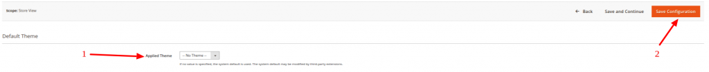 You will be taken to a new screen, where you should be able to select your newly uploaded Theme from the “Applied Theme” (1) Drop Down menu and you should click on “Save Configuration” once you have selected your Theme: