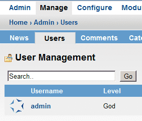 As our demo installation is a new one there is only one username that has the highest privileges. You have three default user levels set on the CMS which you could use to add new users. In order to add a new username to your CMS click on the “Create New User” tab and the following will load:
