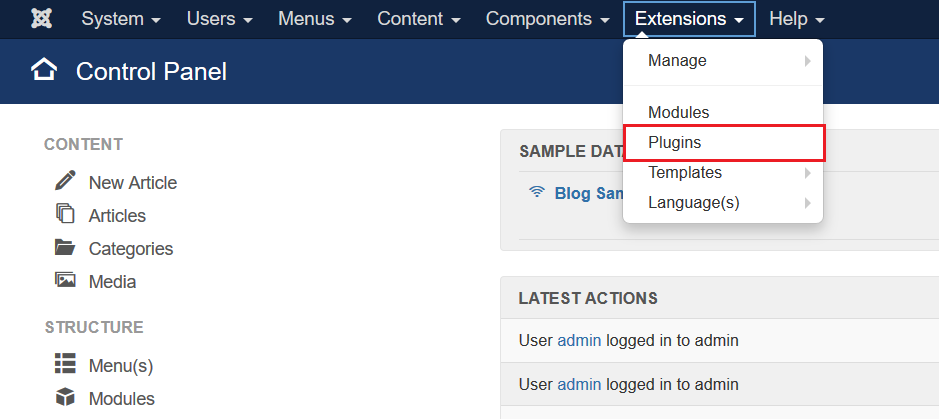 They can be found under the “Extensions” dropdown menu on top of your Joomla’s administrator dashboard.