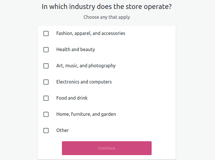 On this page you should choose the industry in which the website is operating. If your industry is not on the list, you can click on “Other” and type it. Once you are done click on the “Continue” button.