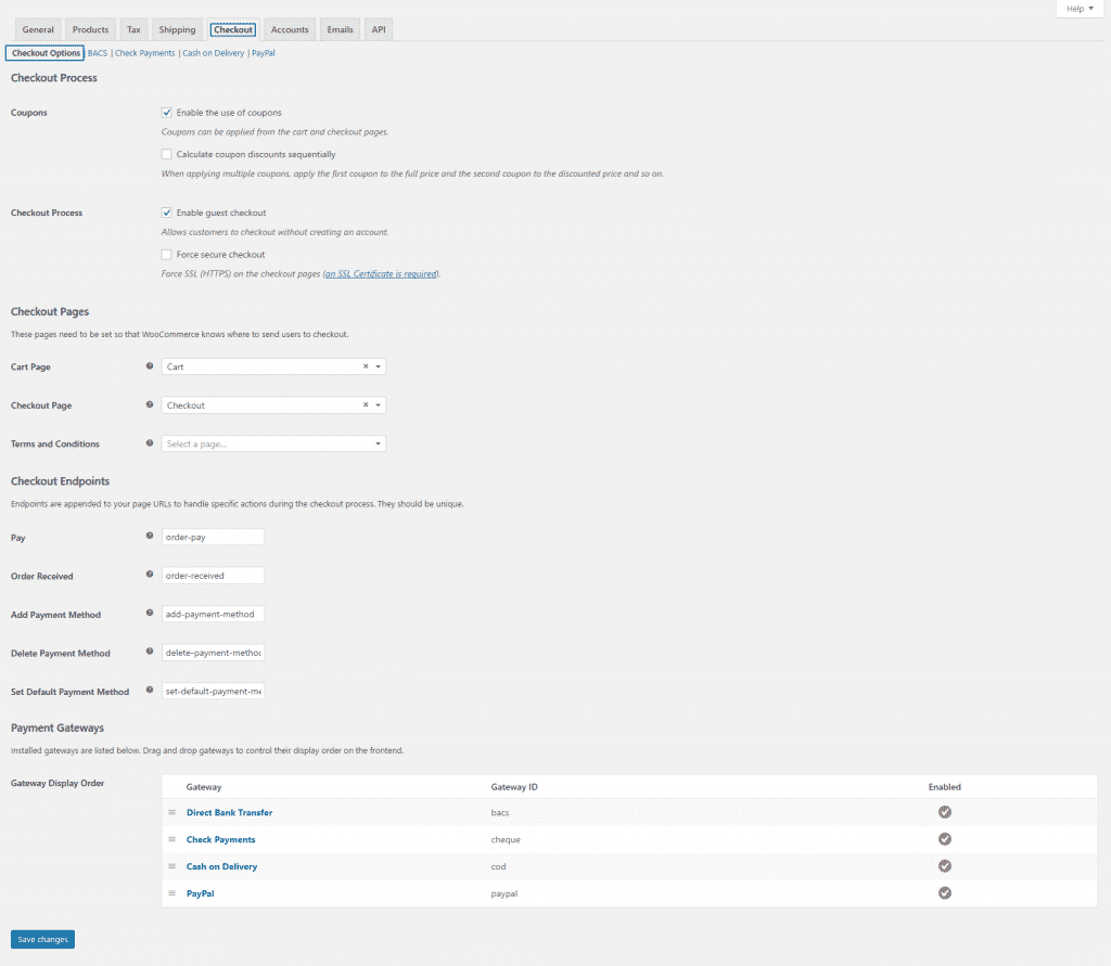 This section allows you to configure the global Checkout Options for your store and also the separate payment gateways.