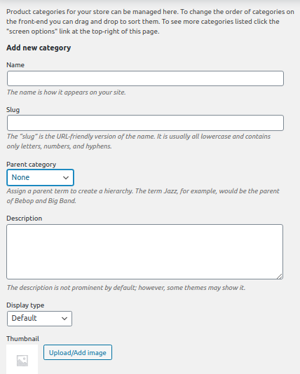 The first thing you should do is to set a name and slug for your new category. After that from the drop down menu “ Parent category” you should choose if the category would be a primary one, or a subcategory of an existing one.